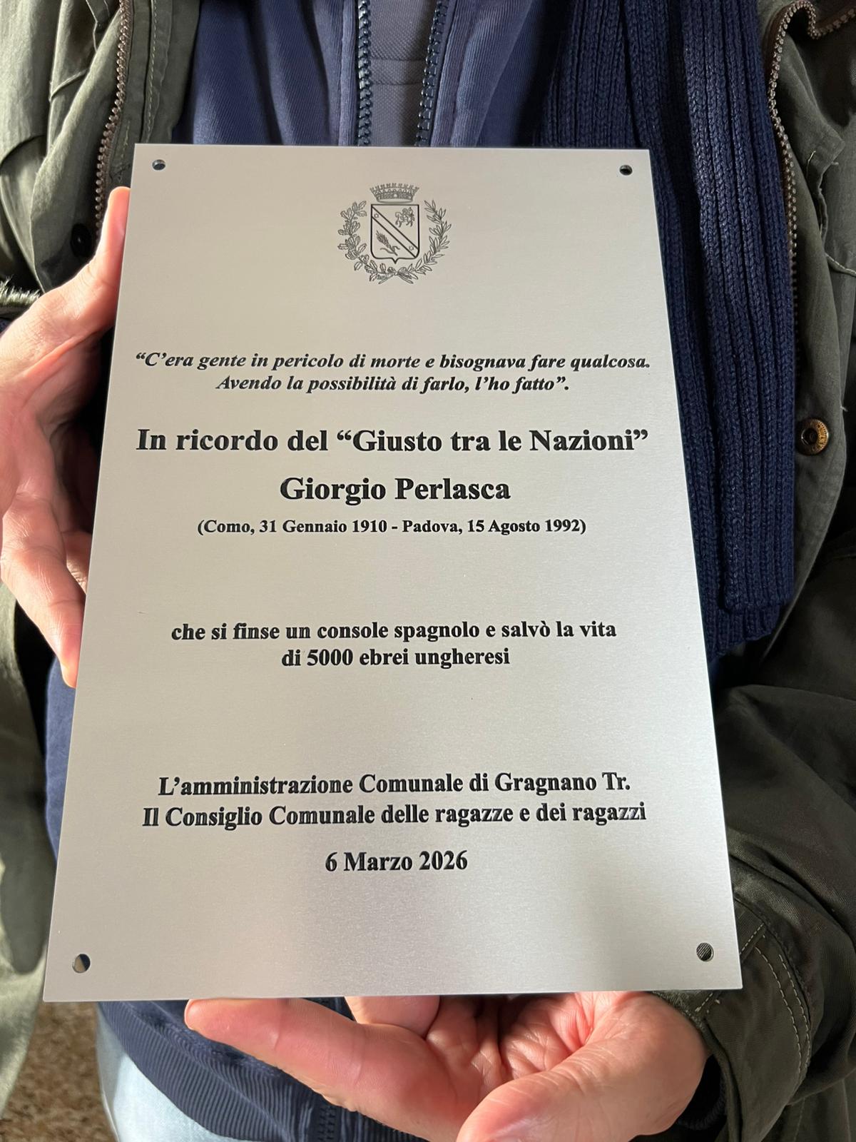 A Gragnano Trebbiense (Pc) alle ore 11 la comunità gragnanese tornerà a riunirsi presso il Giardino dei Giusti”, in via Don Milani, per lo scoprimento di una nuova targa in memoria di un altro Giusto delle Nazioni scelto dall’Amministrazione Comunale, di concerto con il Consiglio Comunale delle ragazze e dei ragazzi. Quest’anno a Gragnano verrà ricordato Giorgio Perlasca, nato a Como il 31 gennaio 1910 e deceduto a Padova il 15 agosto 1992, commerciante e funzionario italiano che nell’inverno del 1944, durante la seconda guerra mondiale, fingendosi il console generale spagnolo presso Budapest, salvò la vita di oltre cinquemila ebrei ungheresi, strappandoli alla deportazione nazista e alla Shoah. La delibera di Giunta.